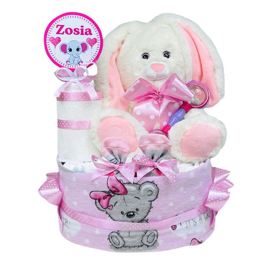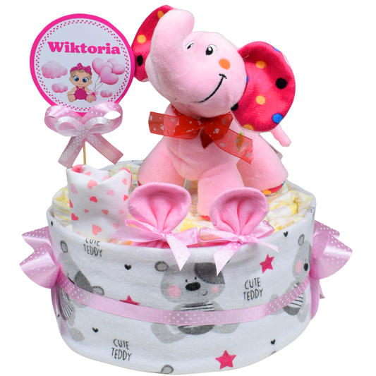 WyprzedaneTort z pieluch słonik grzechotka różowy